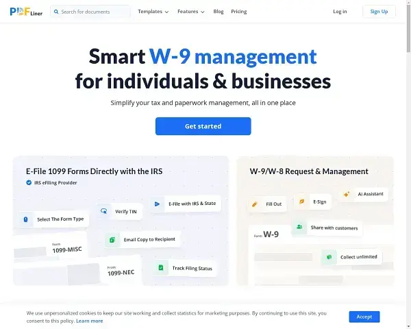 SaaS for PDF editing + IRS 1099 e-filing with Instant TIN Validation, template library, e-signatures, and AI assistance.